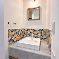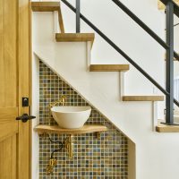 皆様こんにちは、設計の黒島です。 本日は手洗い場の事例を少しお見せします。 階段の勾配を活かした