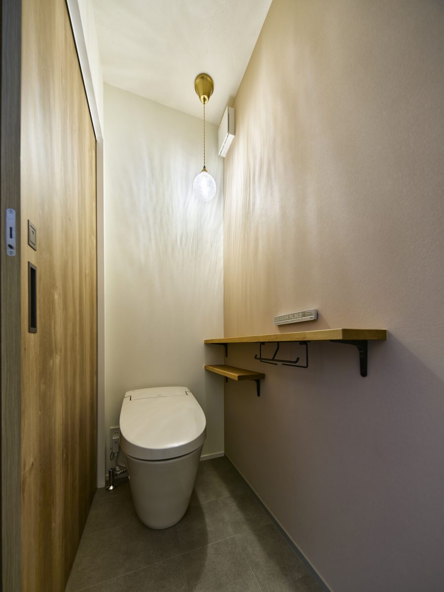 トイレにも造作棚を設けてシンプルに仕上げています。