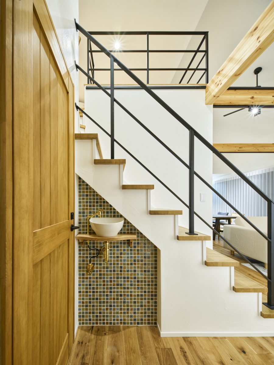 平屋ですが、ロフトがあるので階段があり、その下の空間を使って手洗いを設置しました