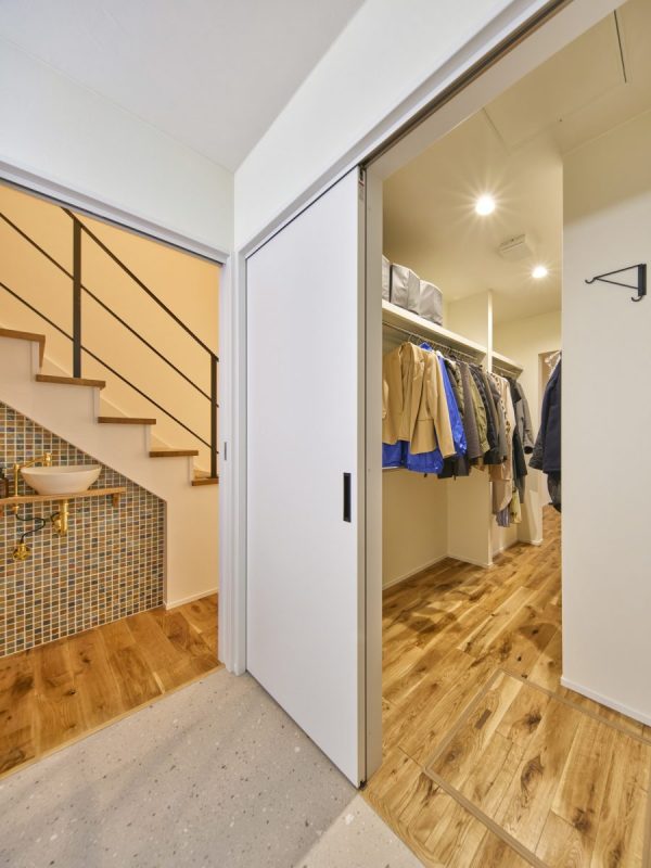 洗面脱衣室の隣には大容量ファミリークローゼットを設けています