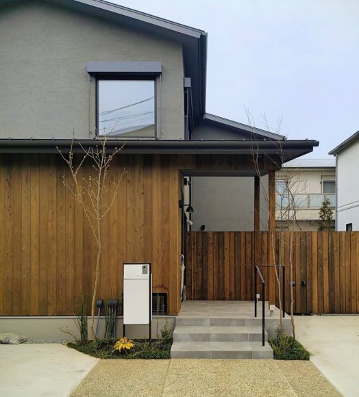 川越の現場では玄関回りの造園工事が完了し、本日は仕上がりの確認に伺いました。
