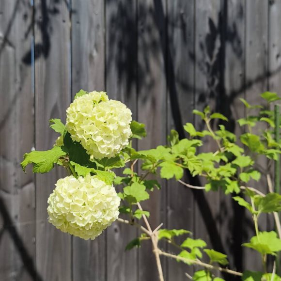 アジサイに似ていますが、違う種類みたいです。ビバーナムスノーボールというお花で、小さい雪玉のようなお花をたくさんつけます。