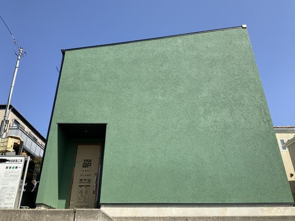 グリーンの外壁が青空に映えます。