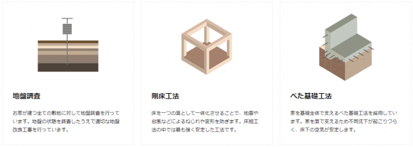 絵で見てもわかるように地面にべったりと基礎がついているため、地盤が安定していれば、より素晴らしい耐震性を発揮してくれます。