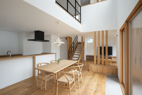 視覚的に区切りつつ家族の雰囲気を感じられるLDK。