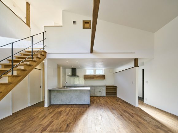 半平屋のお家で1Fで基本的な生活を完結し、2Fは子供部屋+書斎がございます。