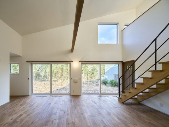 北側の借景を生かすため、北側に大きな窓を設けお庭として使えるように計画しました。