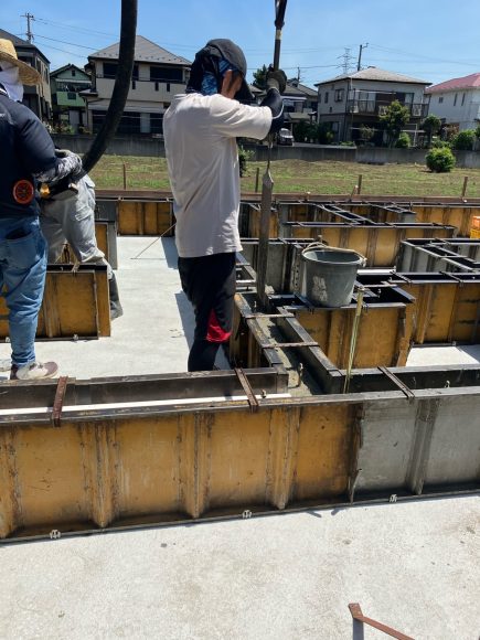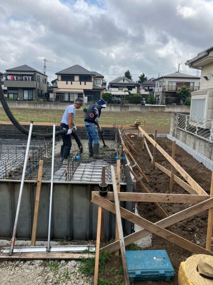 配筋検査の次は、基礎コンクリート打設の様子です。