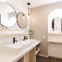 みなさん、こんにちは。 いろいろな洗面室のご紹介です。 △朝の混雑が緩和できる、2人で使える洗面台です。 そ