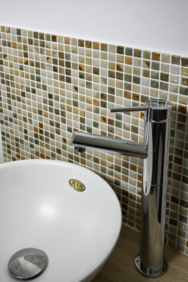 手洗いやキッチンにも使えるアクセントタイルのご紹介です。
