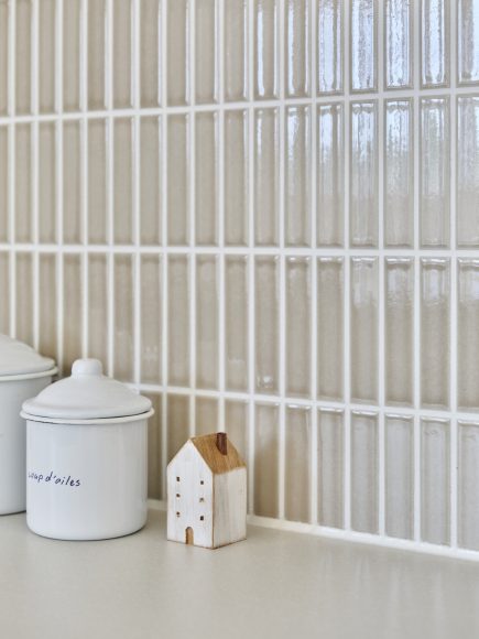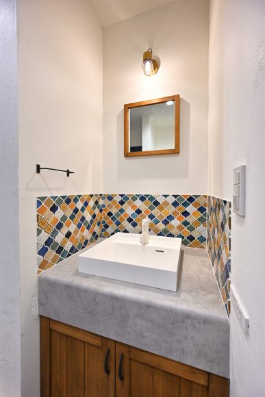 小さなタイルでちょっとしたスペースにもアクセントを作れます。