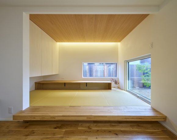 リビング脇に設けたこちらの畳スペースは、リビングの床からは20cm上がっており、