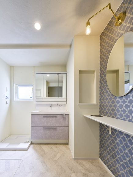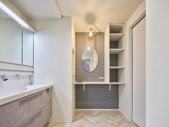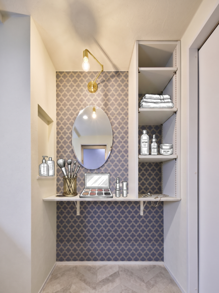 今回は、洗面室の中にメイクスペースを設置しました。