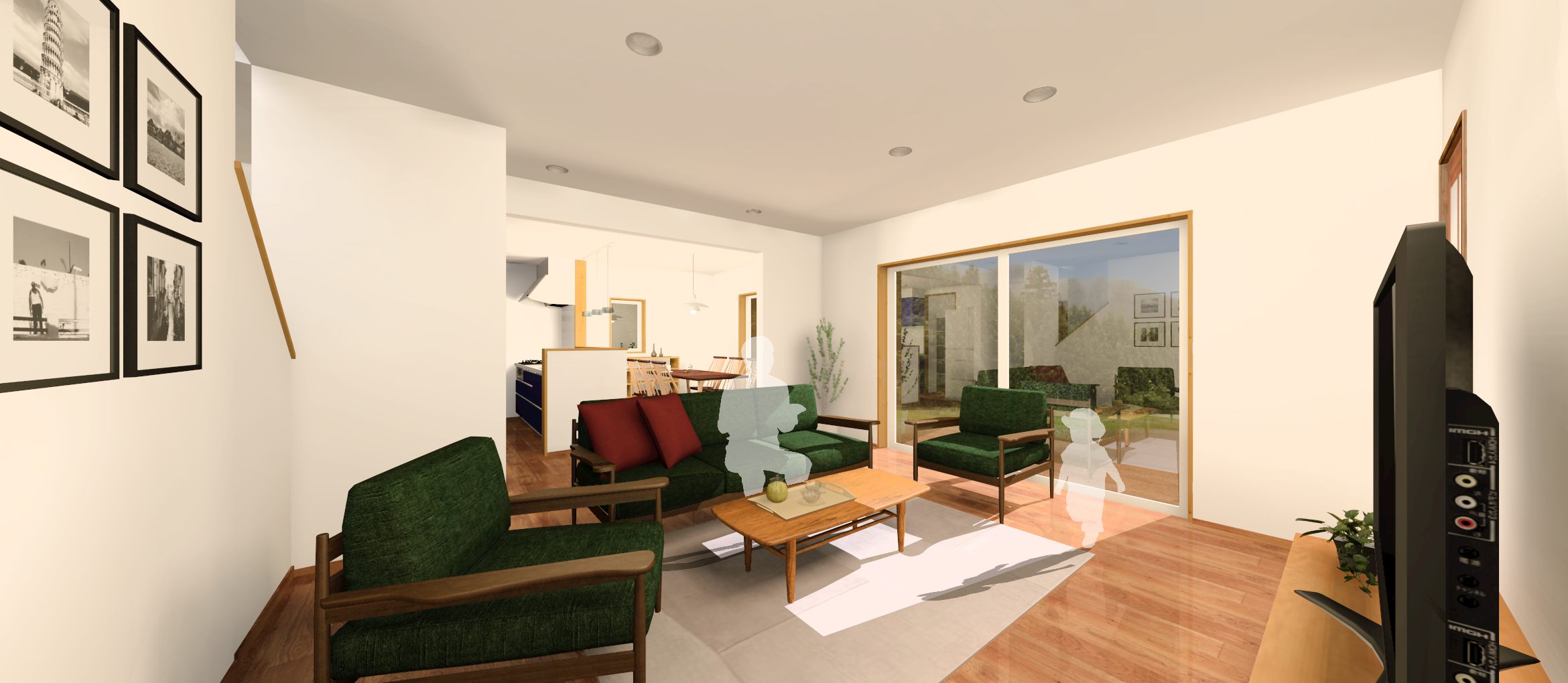 リビングには大開口サッシを設け、明るさと開放感を最大限に確保。