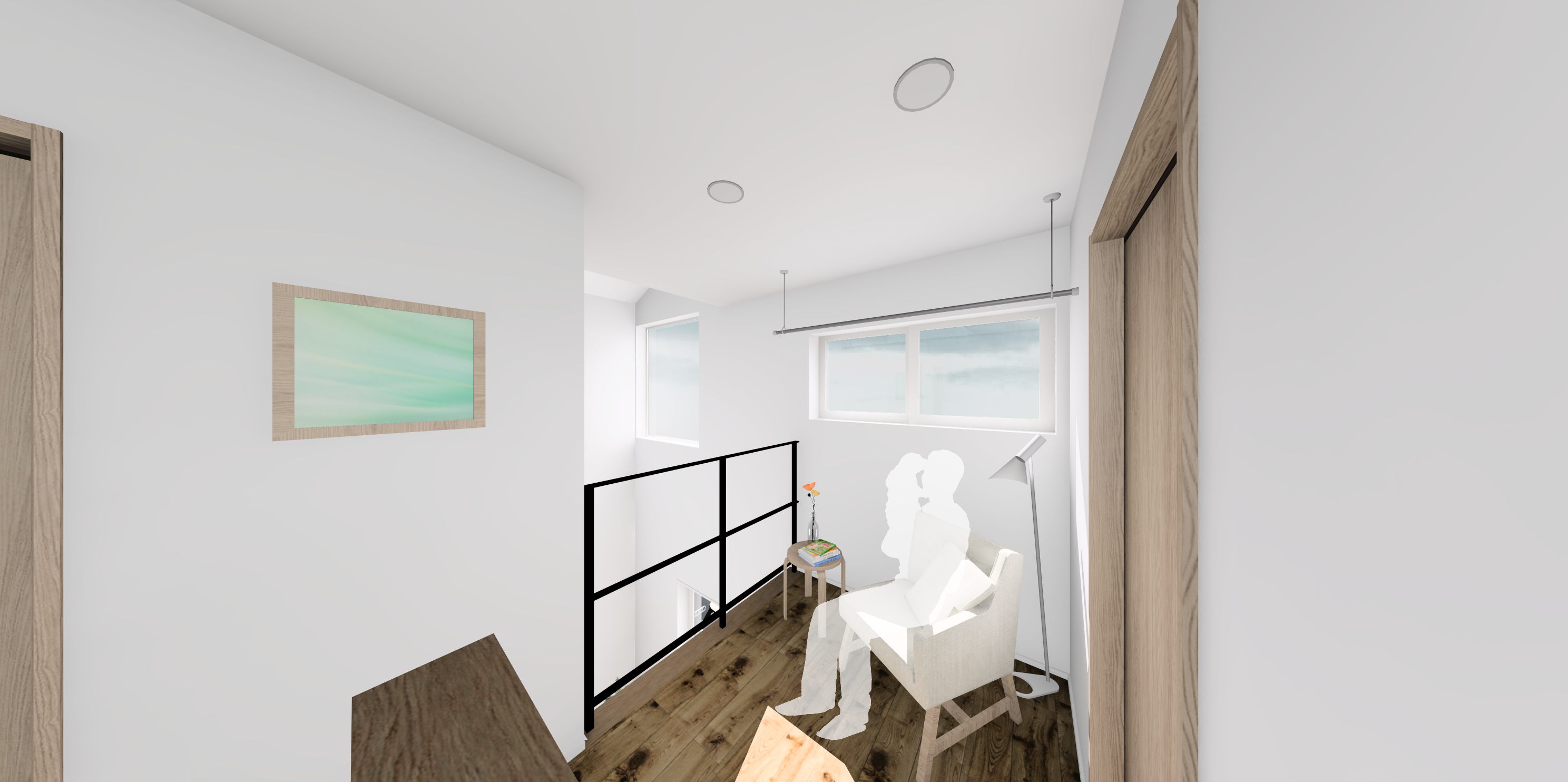 また、洗濯物や布団が干せるように物干しを計画し、アイロンがけが出来るよう折りたたみ式のカウンターも計画しました。