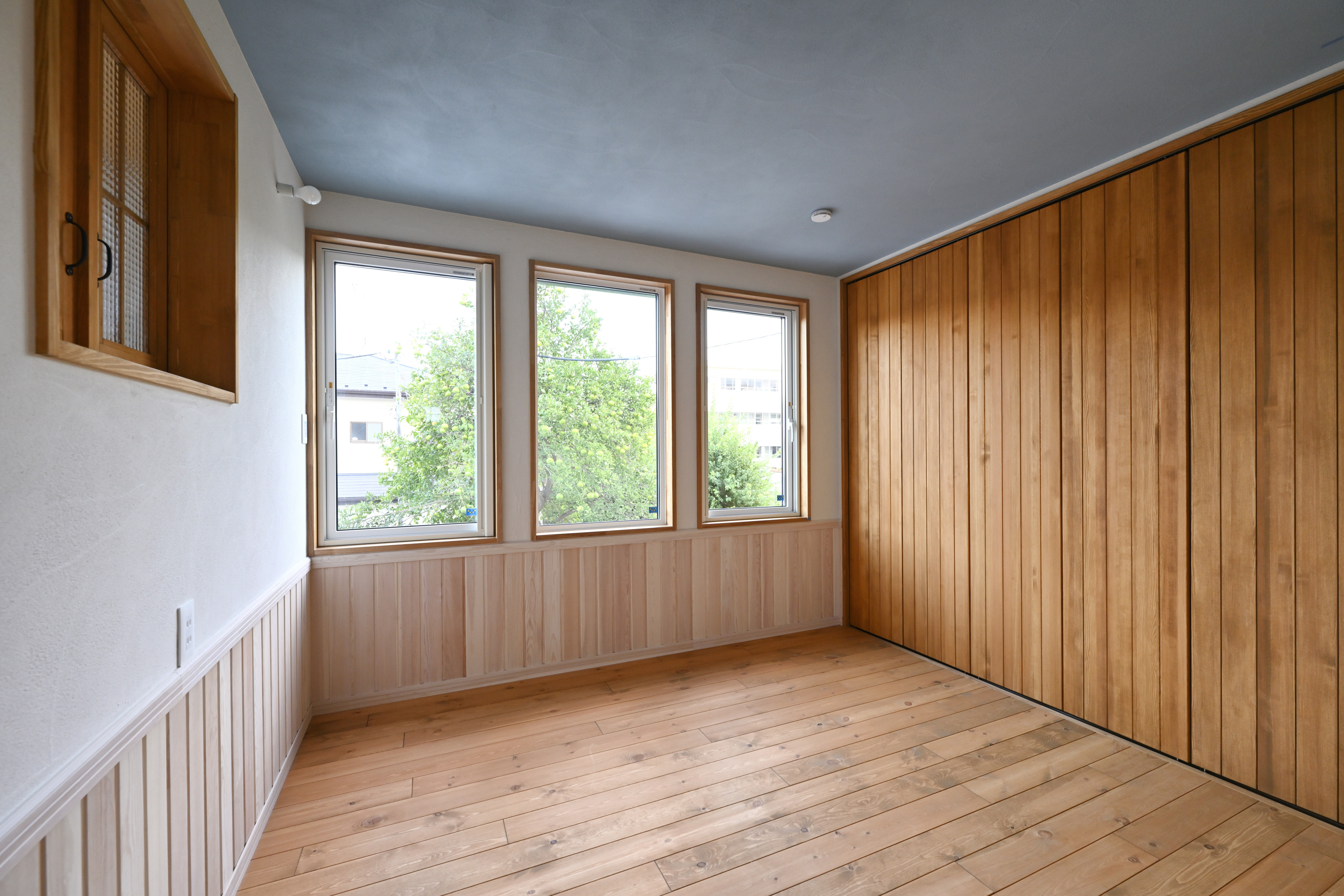 寝室には、睡眠効果が高い杉板を使用しました。
