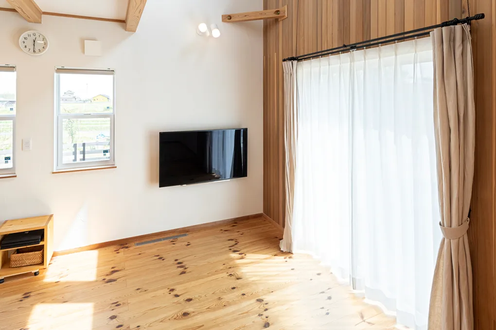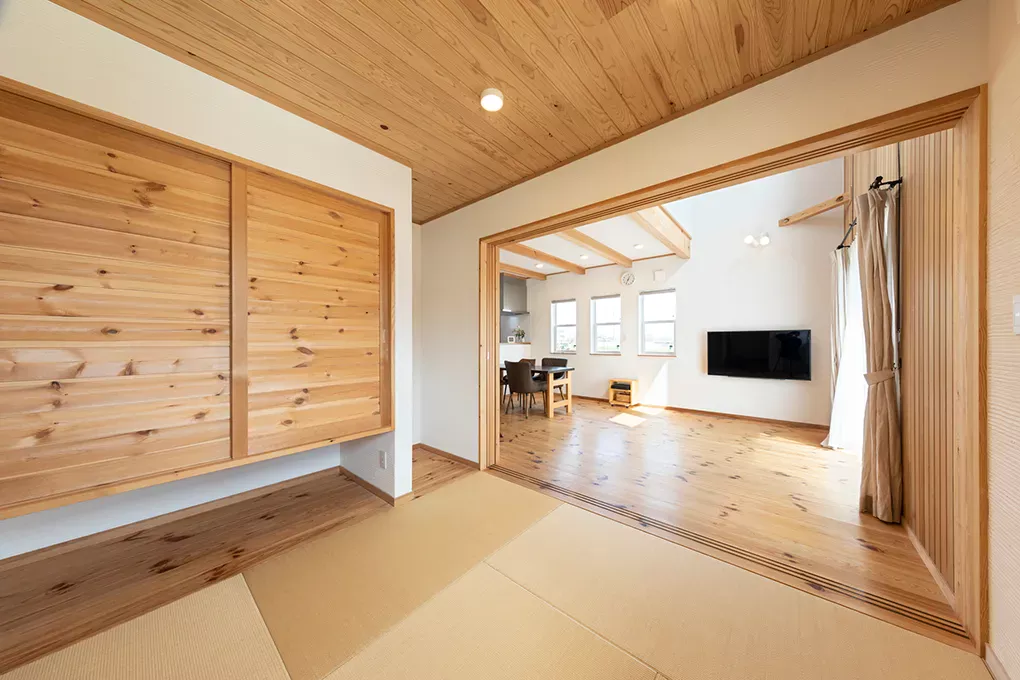 木目を楽しむ板張り天井の省エネハウス