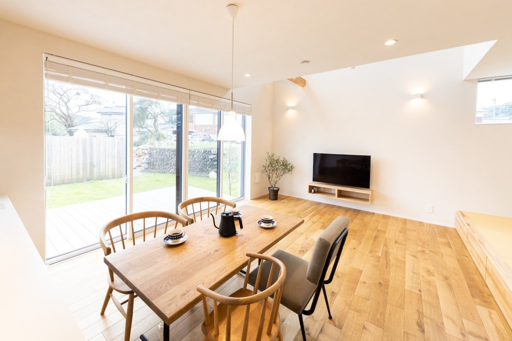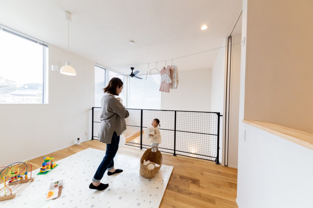 広々とした空間で家族時間を過ごす家